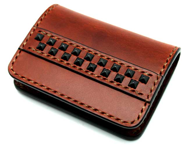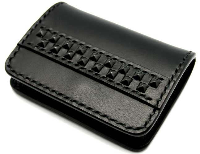 スタッズワークを施したベルトデザインが特徴の、コインケースです。