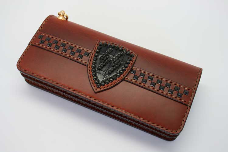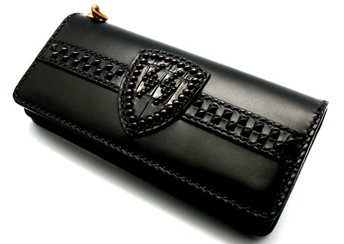 盾をモチーフにしたフェイスデザインが特徴のロングウォレットです。