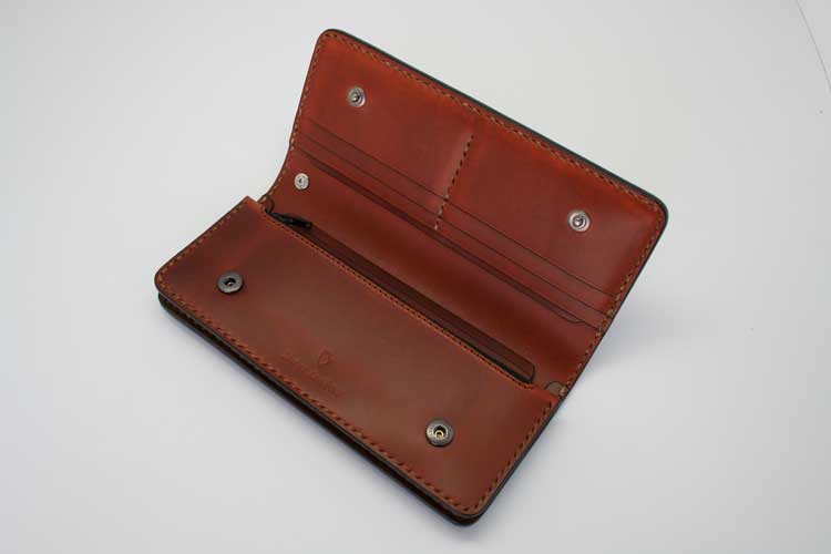 フェイス面裏側にも革が貼られており、外観の美しさと、スムーズな札の出し入れを実現しています。